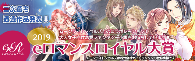 2019年09月03日(火)編集部より 『2019 eロマンスロイヤル大賞』途中経過のお知らせについて 『2019 eロマンスロイヤル大賞』の途中経過については、「えんため大賞」サイトの方をご覧くださいますようお願いいたします。 ウェブサイトをリニューアルいたしました関係でお手数をおかけいたしまして申し訳ございません。 現在は二次選考通過作品を発表中です。 (※結果発表は9月下旬を予定しております) 『2019 eロマンスロイヤル大賞』途中経過はコチラ♪