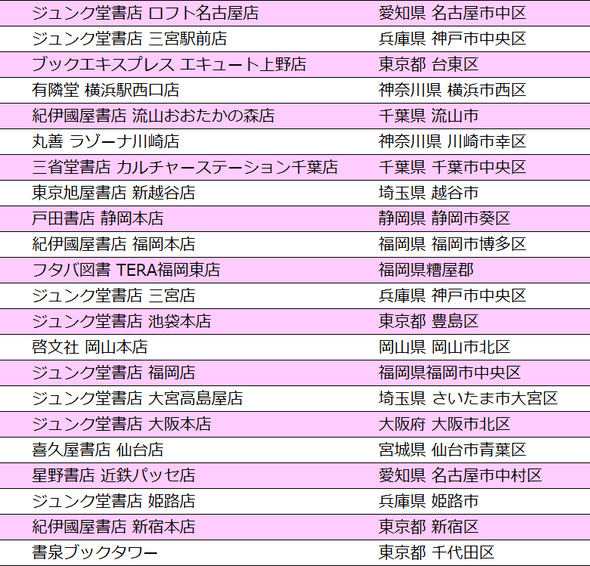 ◆ 特典ペーパー配布ご協力書店さま一覧
